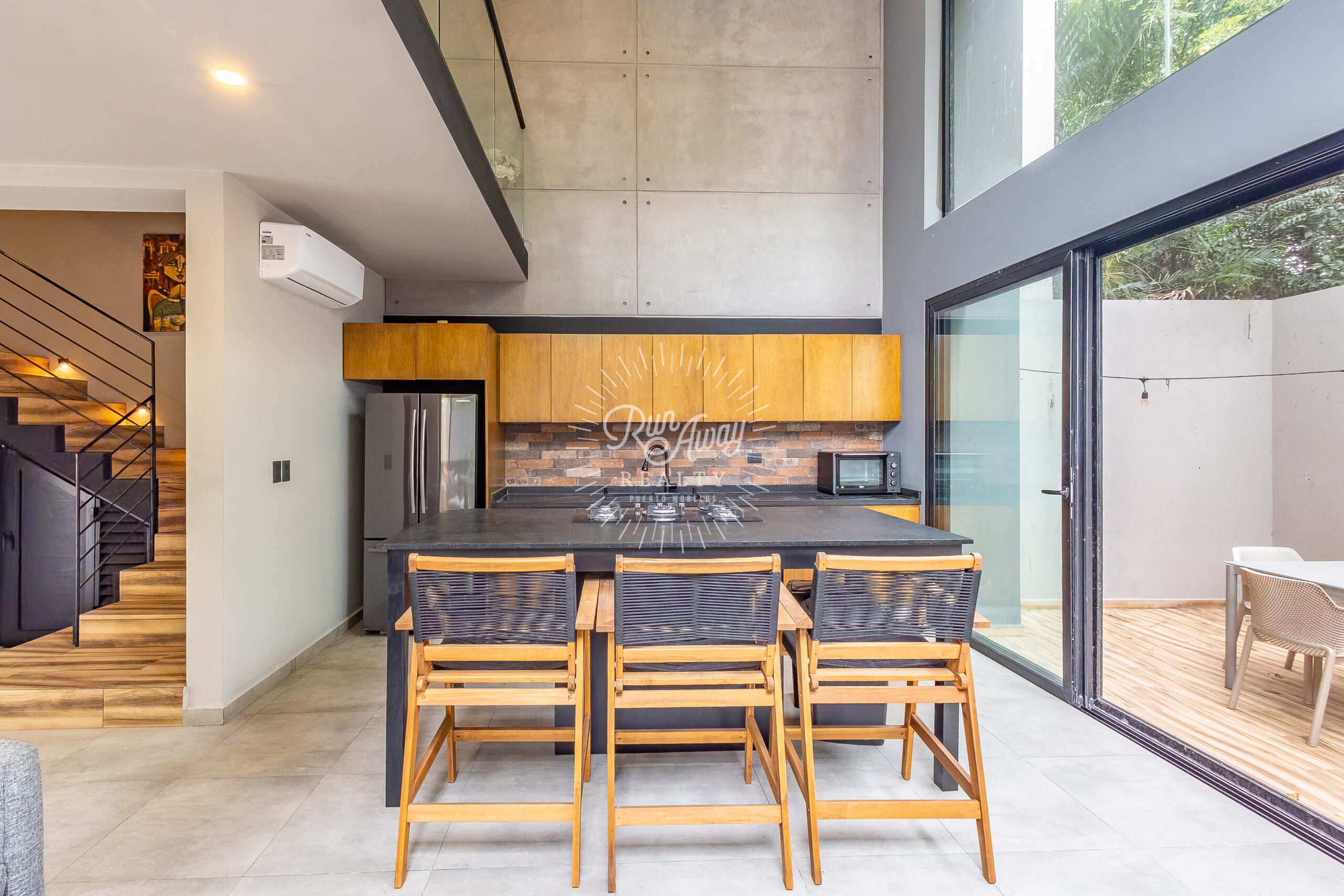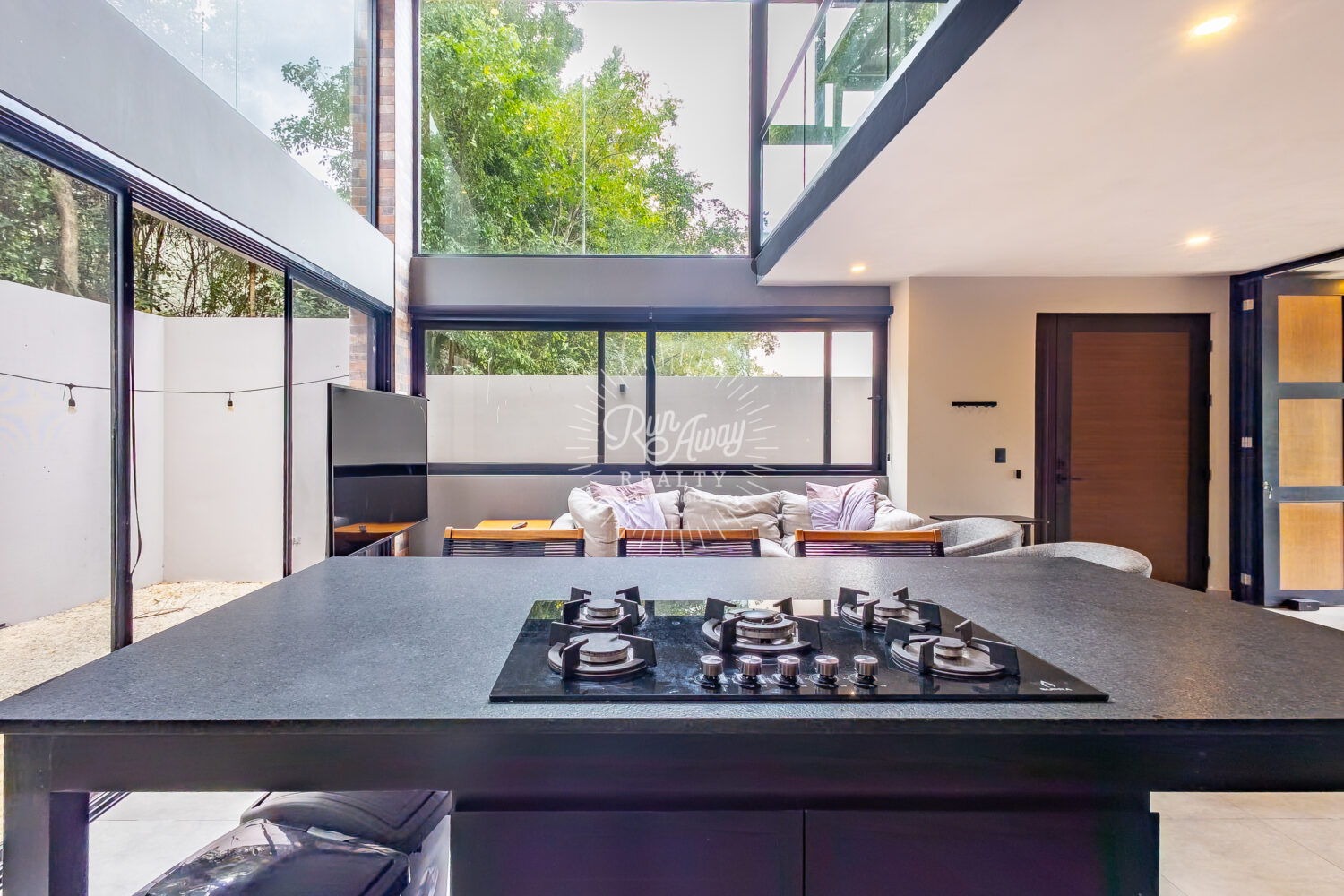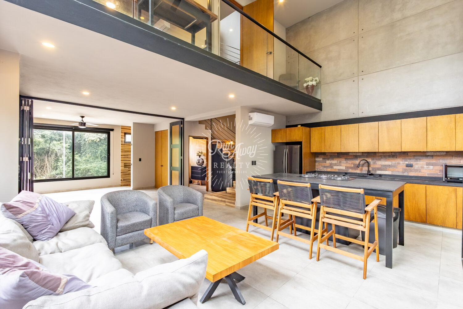From the moment you step inside, this home invites you to slow down and breathe. A dramatic double-height great room opens before you, where the kitchen, living, and dining spaces flow together beneath soaring ceilings and two full stories of windows. Sunlight pours in, tropical breezes drift through, and lush palms just beyond the glass create a constant connection to the natural beauty of Mexico.