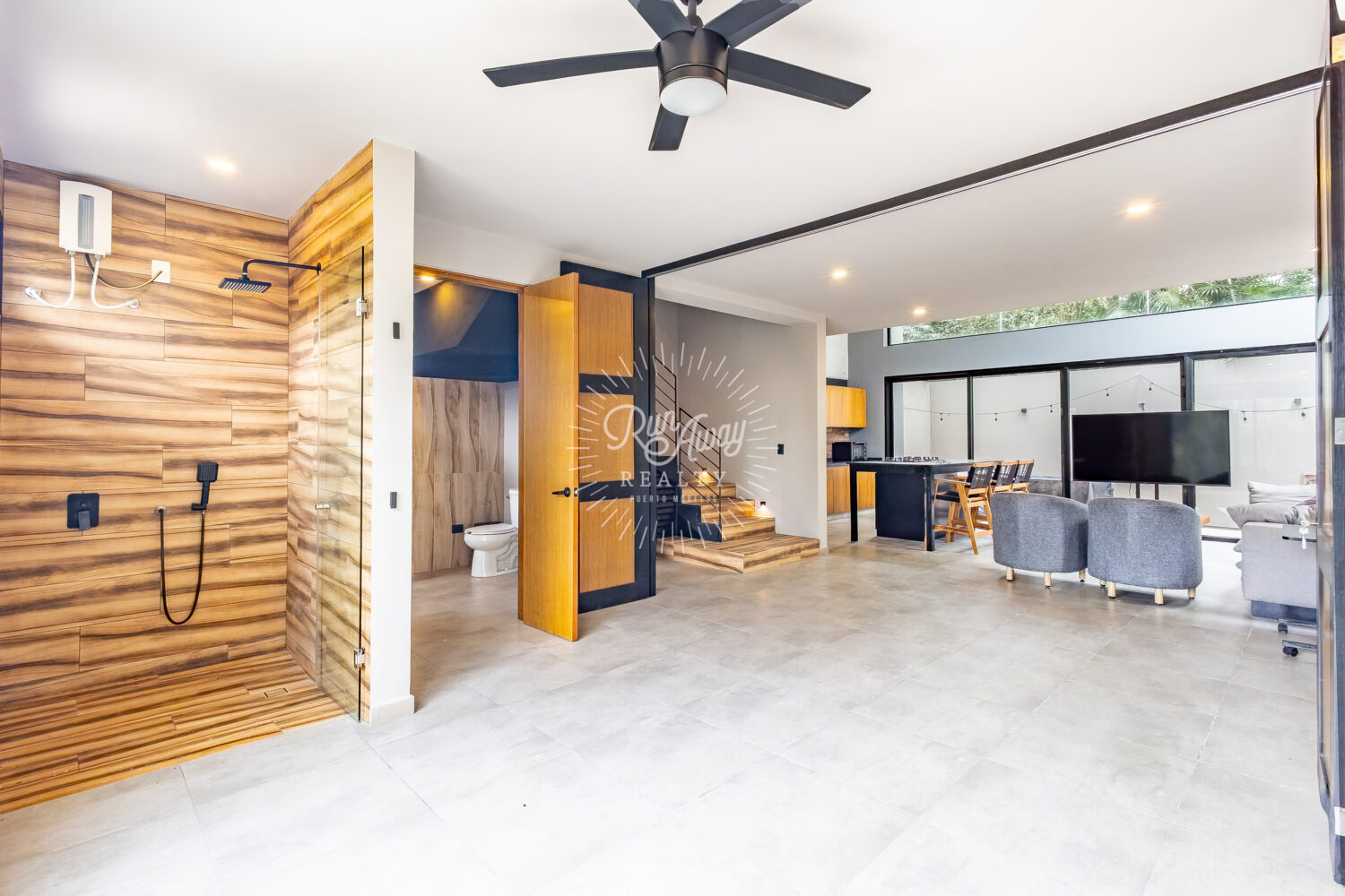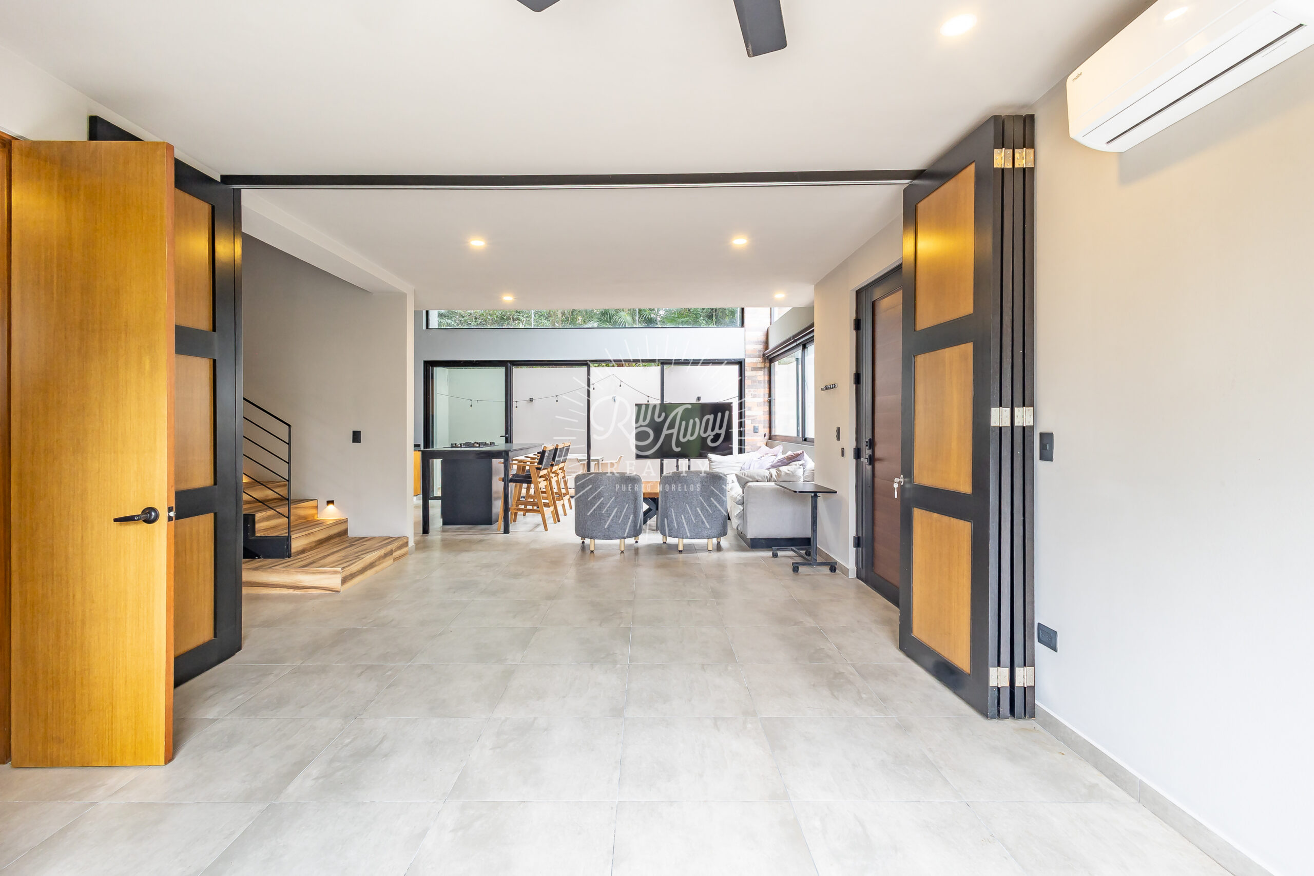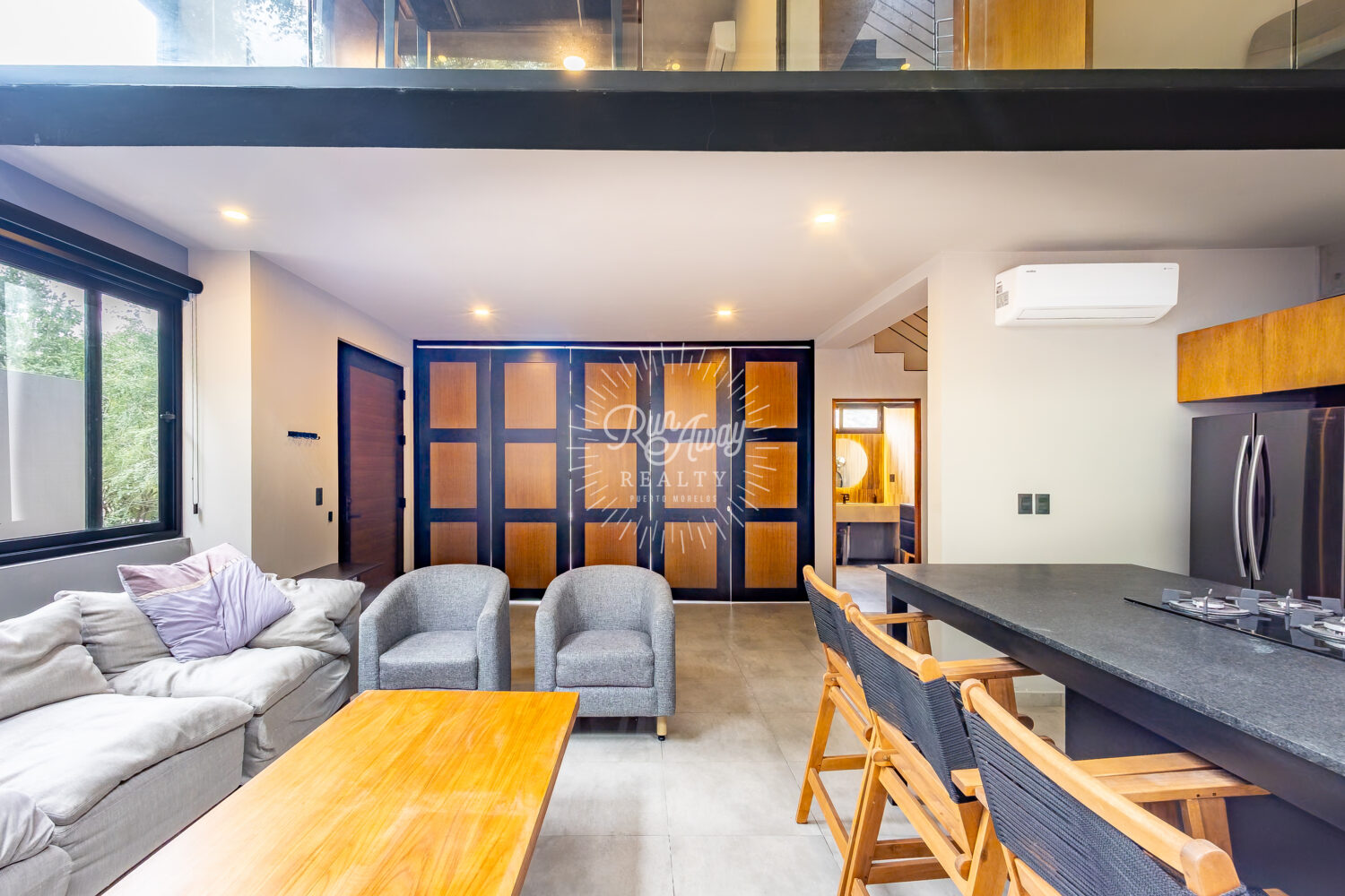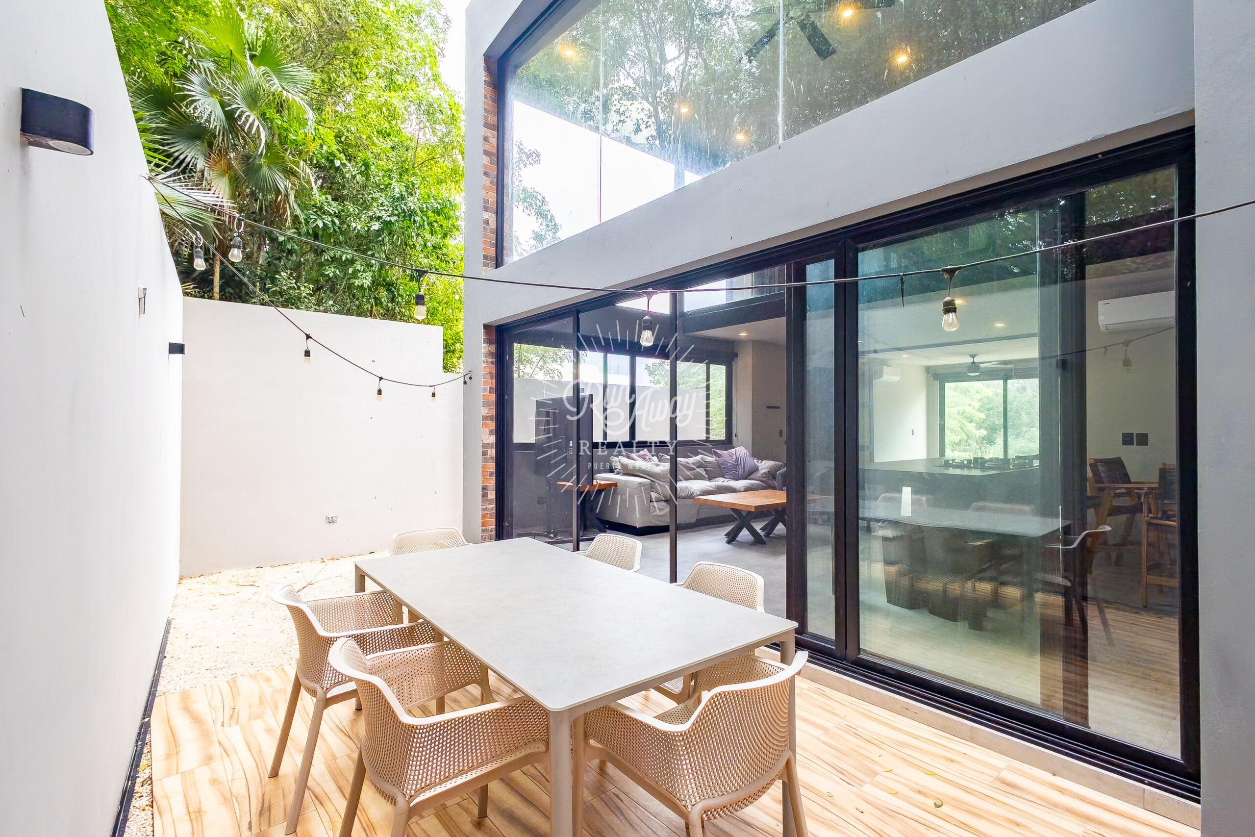 From the moment you step inside, this home invites you to slow down and breathe. A dramatic double-height great room opens before you, where the kitchen, living, and dining spaces flow together beneath soaring ceilings and two full stories of windows. Sunlight pours in, tropical breezes drift through, and lush palms just beyond the glass create a constant connection to the natural beauty of Mexico.