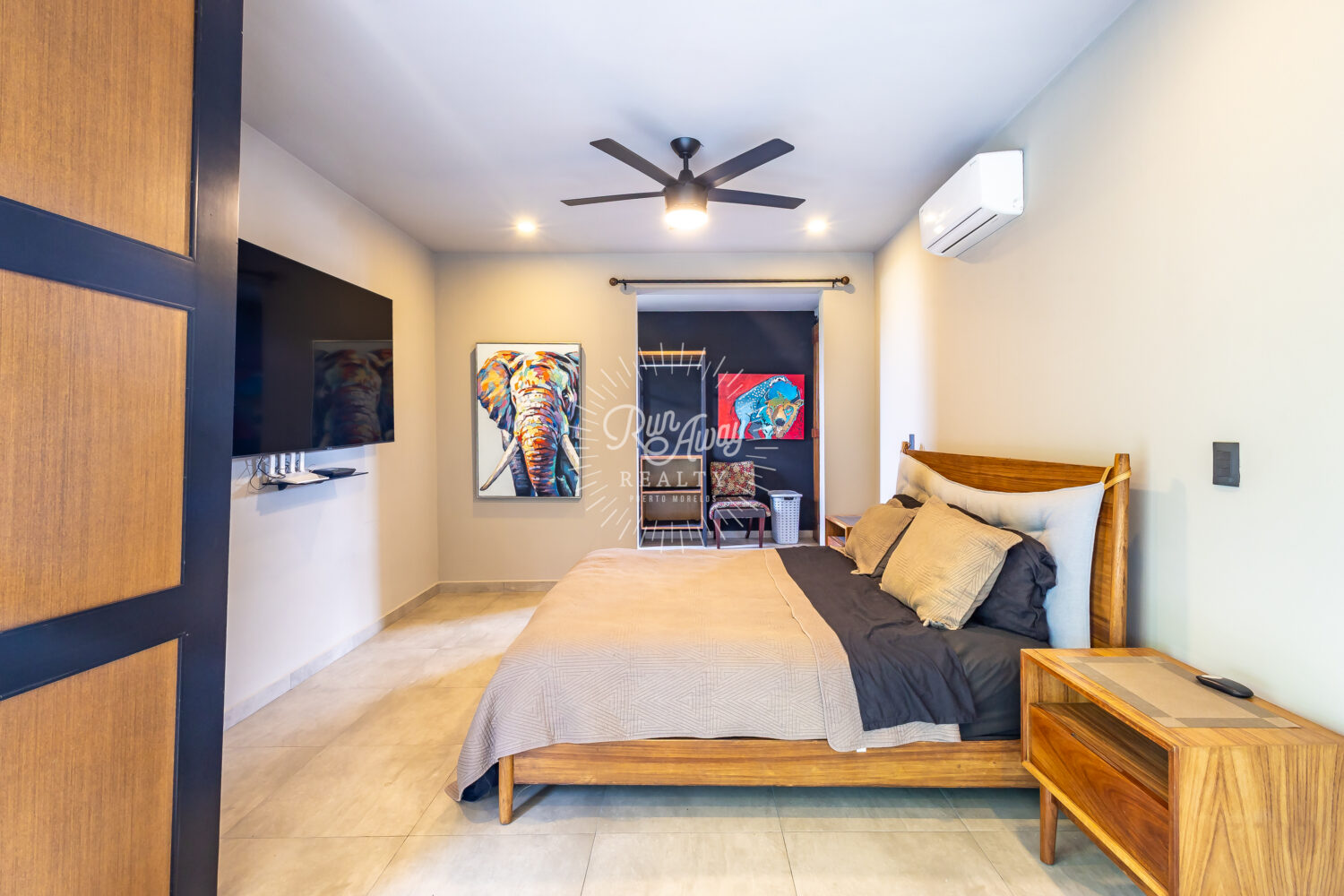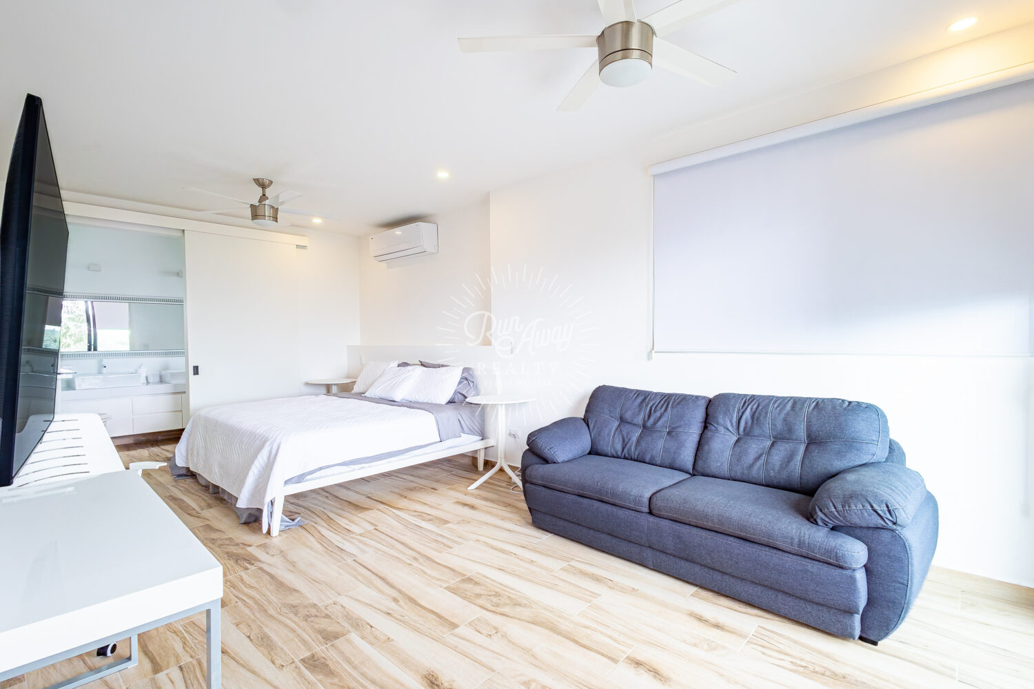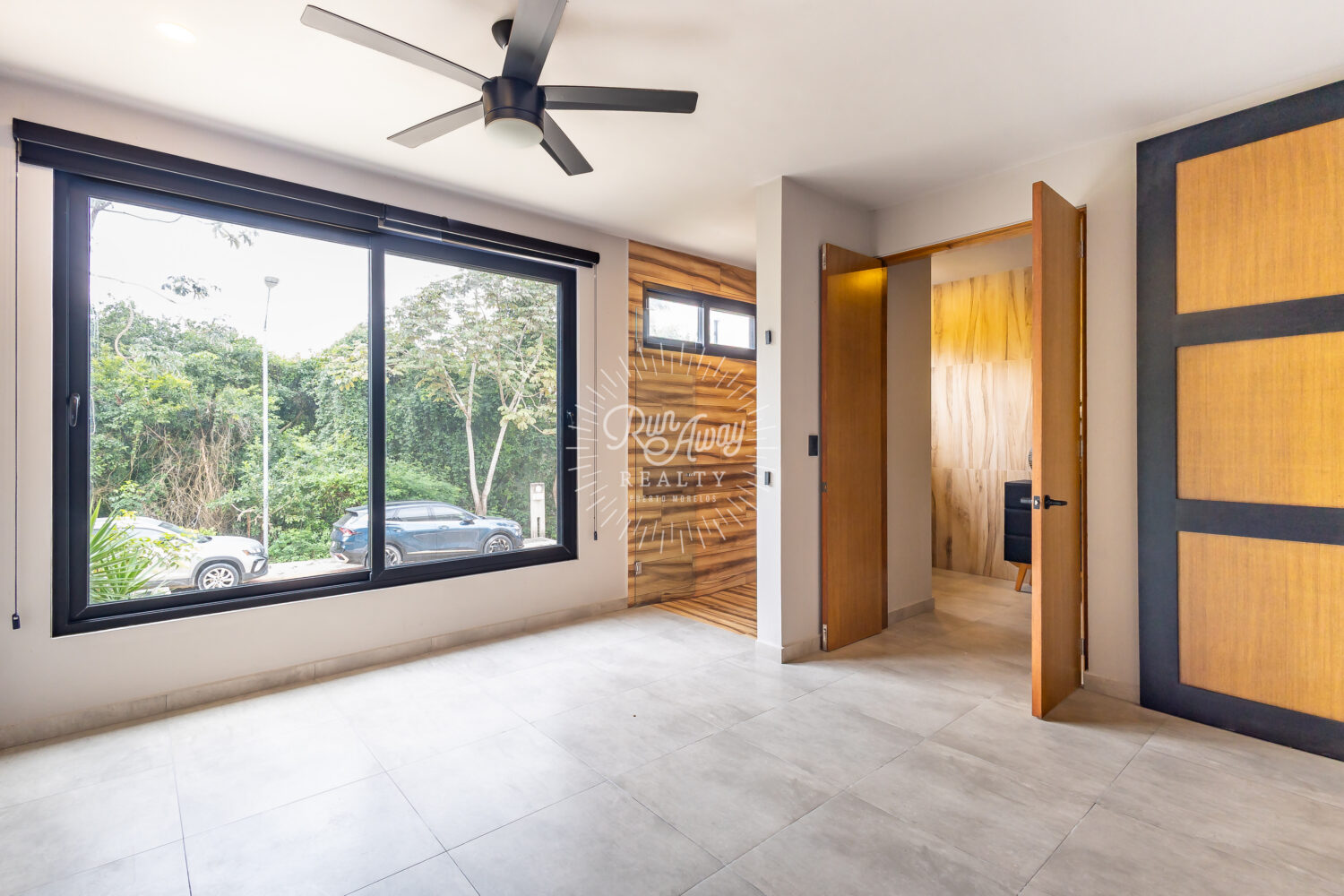 The entire living area opens wide to the terrace, blurring the line between indoors and out. Imagine morning coffee with the sound of rustling palms, long afternoons filled with light and air, and evenings spent entertaining as the sunset filters through the trees.