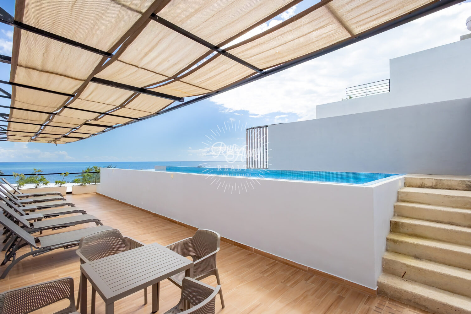 Set in a boutique 11-unit building, you’ll enjoy privacy, peace, and an unbeatable location close to dining, cafés, and local shops. The rooftop terrace invites you to soak in panoramic 360° ocean views while relaxing in the infinity pool or lounge area — pure Puerto Morelos magic.
